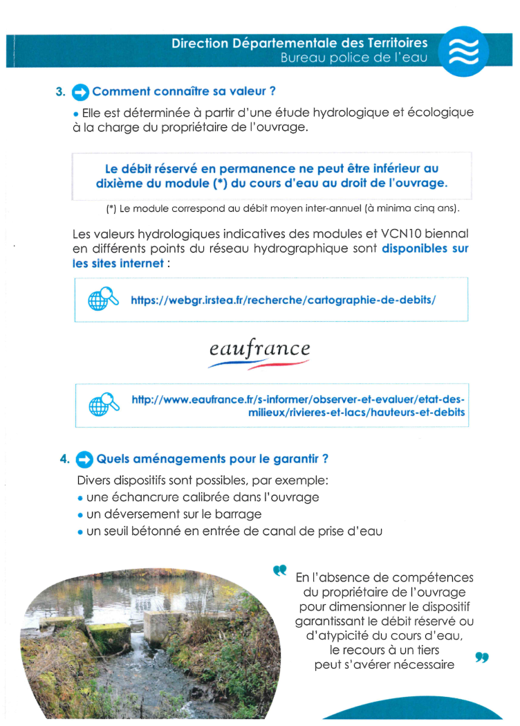 La Préfecture de Côte-d'Or a réalisé la plaquette d'information suivante concernant le Débit Minimum Biologique.