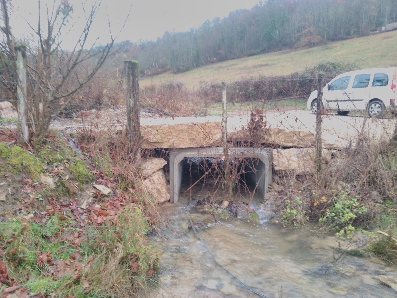 Ce projet a consisté à remplacer un passage busé infranchissable (pour la faune piscicole à la montaison ainsi que pour le transport sédimentaire) par un pont constitué d'un cadre en béton d’un