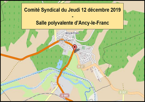 Faute de quorum au dernier comité du 28 novembre, le Comité Syndical aura lieu le Jeudi 12 décembre 2019 à la salle polyvalente d'Ancy-le-Franc.