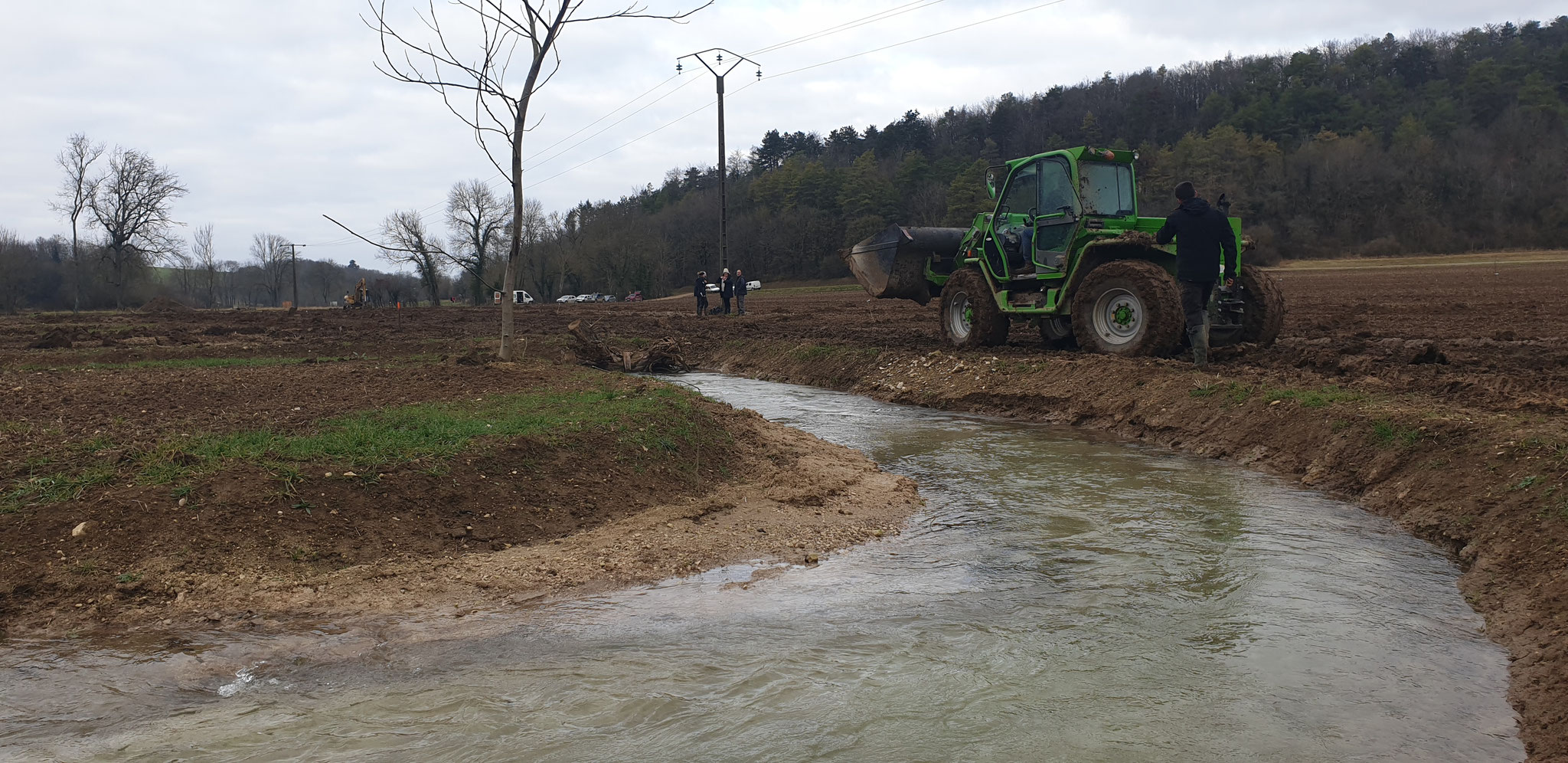 Les interventions post-travaux sur le site de restauration de Chesley sont arrivées ! Au programme, plantation d'amandiers sur les parcelles à proximité du cours d'eau.