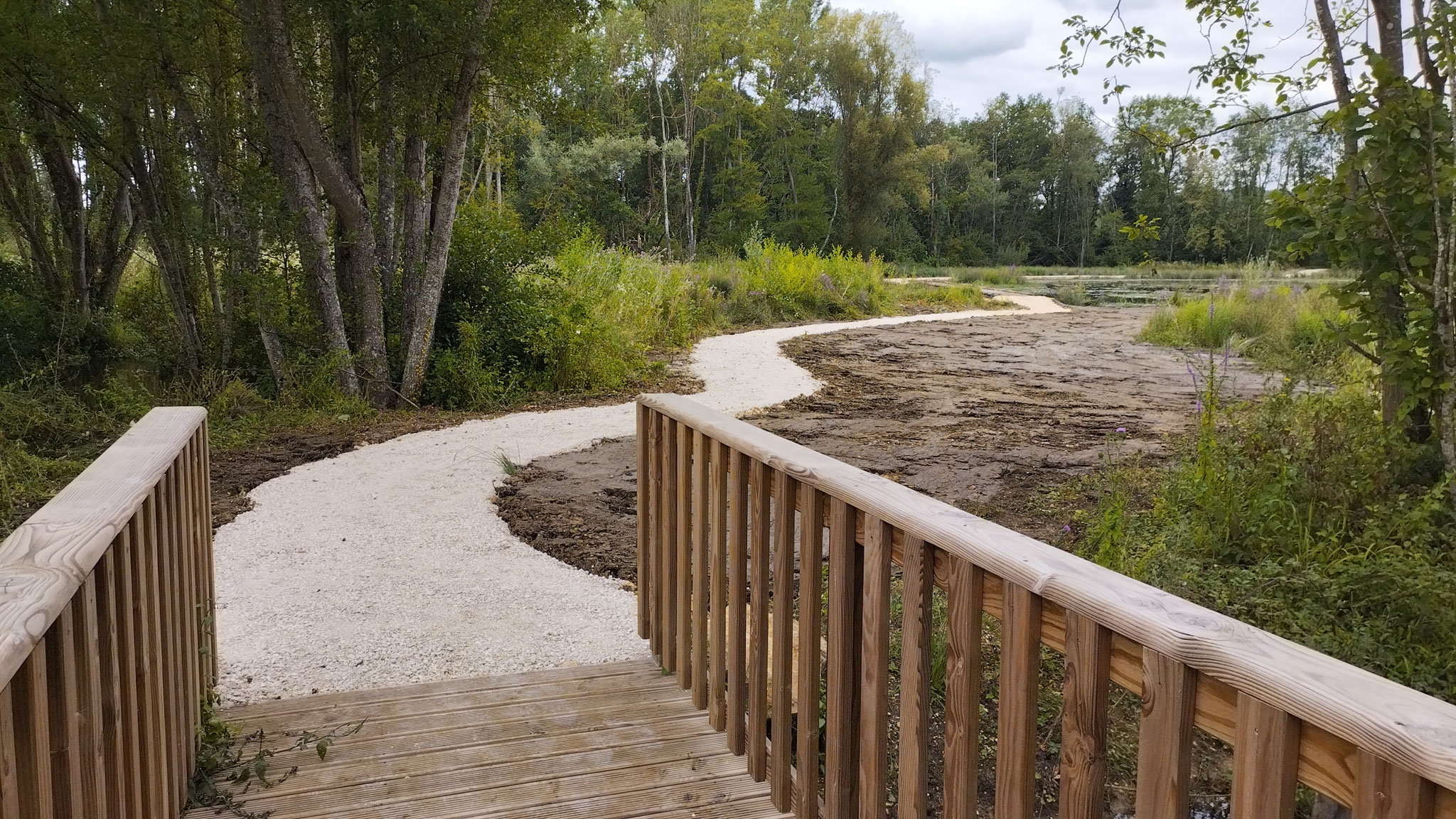 L’opération de restauration du ru de Vézinnes terminée l’été dernier (près de 2 km de cours d’eau restauré, création d’une noue de 6400m² et de deux mares, suppression d’un seuil et de remblais) a été complétée le mois dernier par un cheminement piéton qui permet de traverser une partie de site. Le sentier de 225 m de chemin traverse :