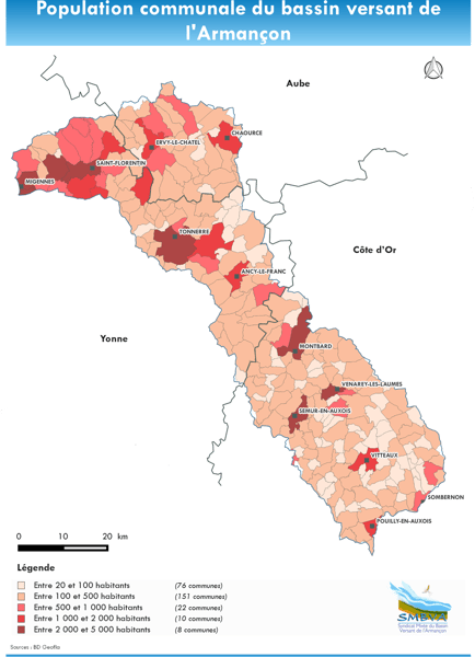 267 communes sont présentes sur le bassin versant. La population du bassin de l’Armançon atteint ainsi 86 200 habitants, dont :